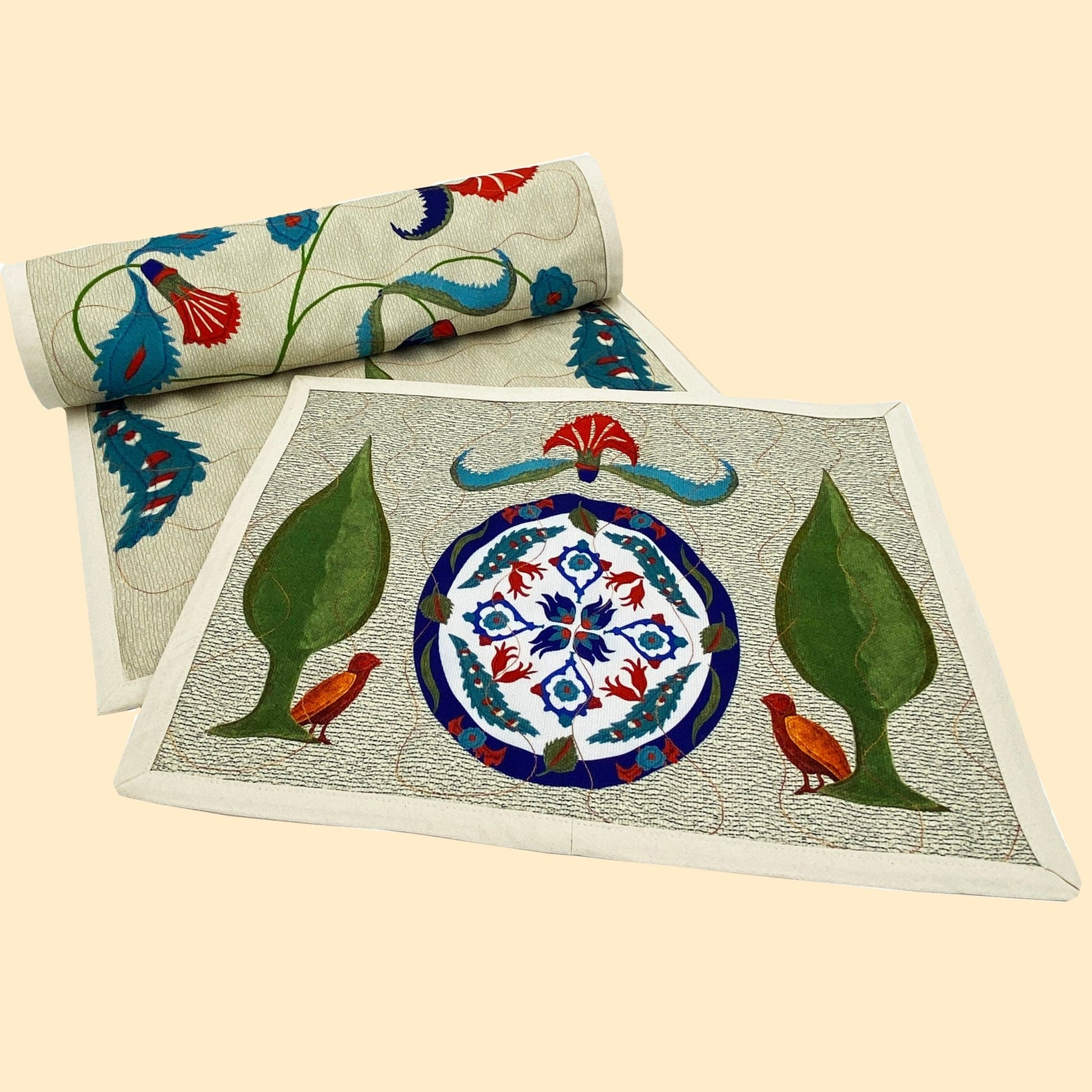 A trip to Istanbul and a visit to the Ottoman Sultans' Topkapi Palace was awe-inspiring. QuirkyDigs created its version in this placemat / table runner set. Next stop Iznik!